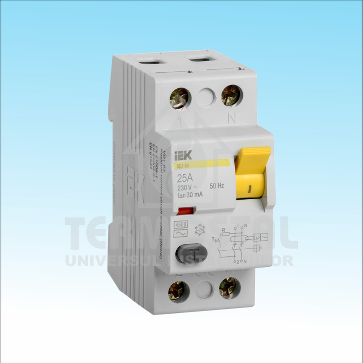 Comutator de siguranță pentru curent rezidual de mare viteză, fără protecție încorporată la supracurent. Este conceput pentru a proteja o persoană de șocuri electrice în caz de contact accidental neintenționat cu părțile sub tensiune ale instalațiilor electrice și previne apariția incendiilor datorate curenților de scurgere care curg la sol. Nu are consum propriu de energie electrică și are o rezistență mecanică ridicată la uzură.