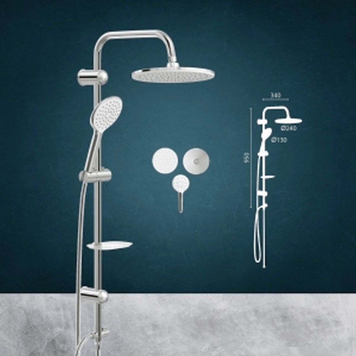 BARA DUS CU DIFUZOR 240 MM + DIFUZOR 130 MM SUPORT REGLABIL DELUXE CHROME 150 CM
