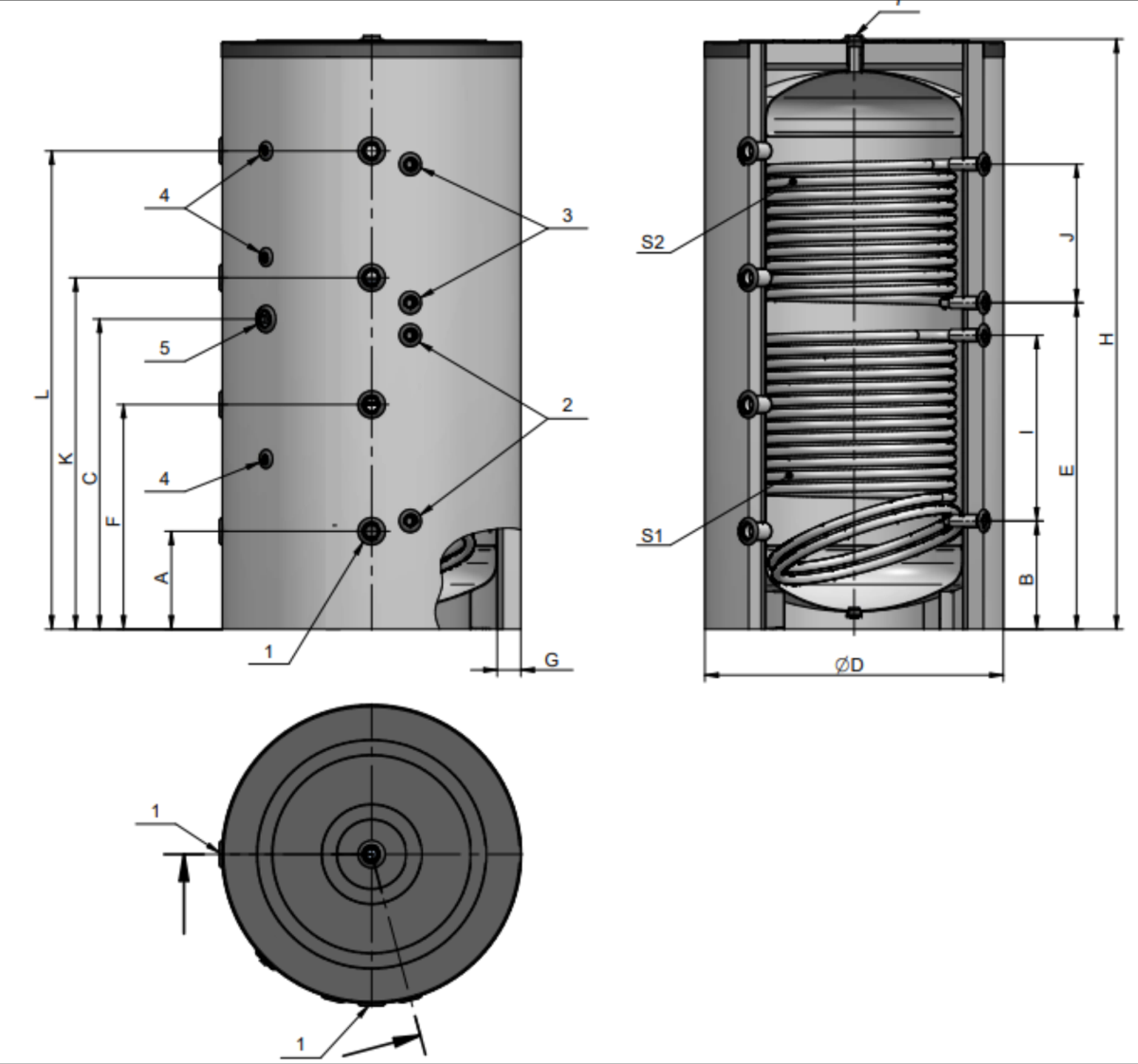 ACUMULATOR NEEMAILAT ELDOM 1000 LT, 2 SERPENTINE SI REZISTENTA ELECTRICA