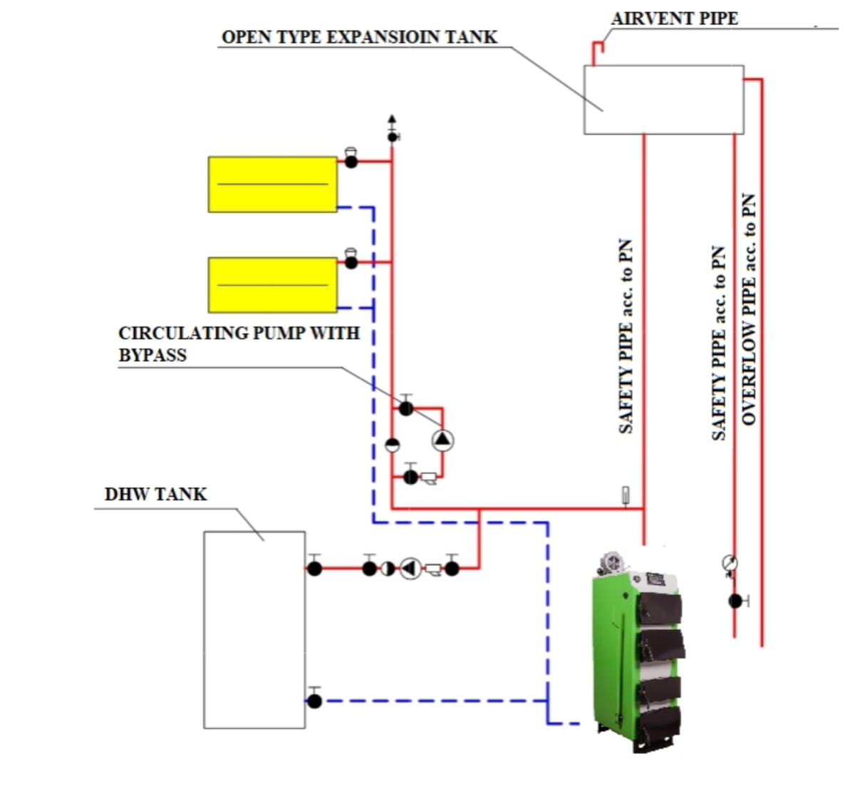 - Presiunea maximă a apei în cazan: 0,15 MPа;