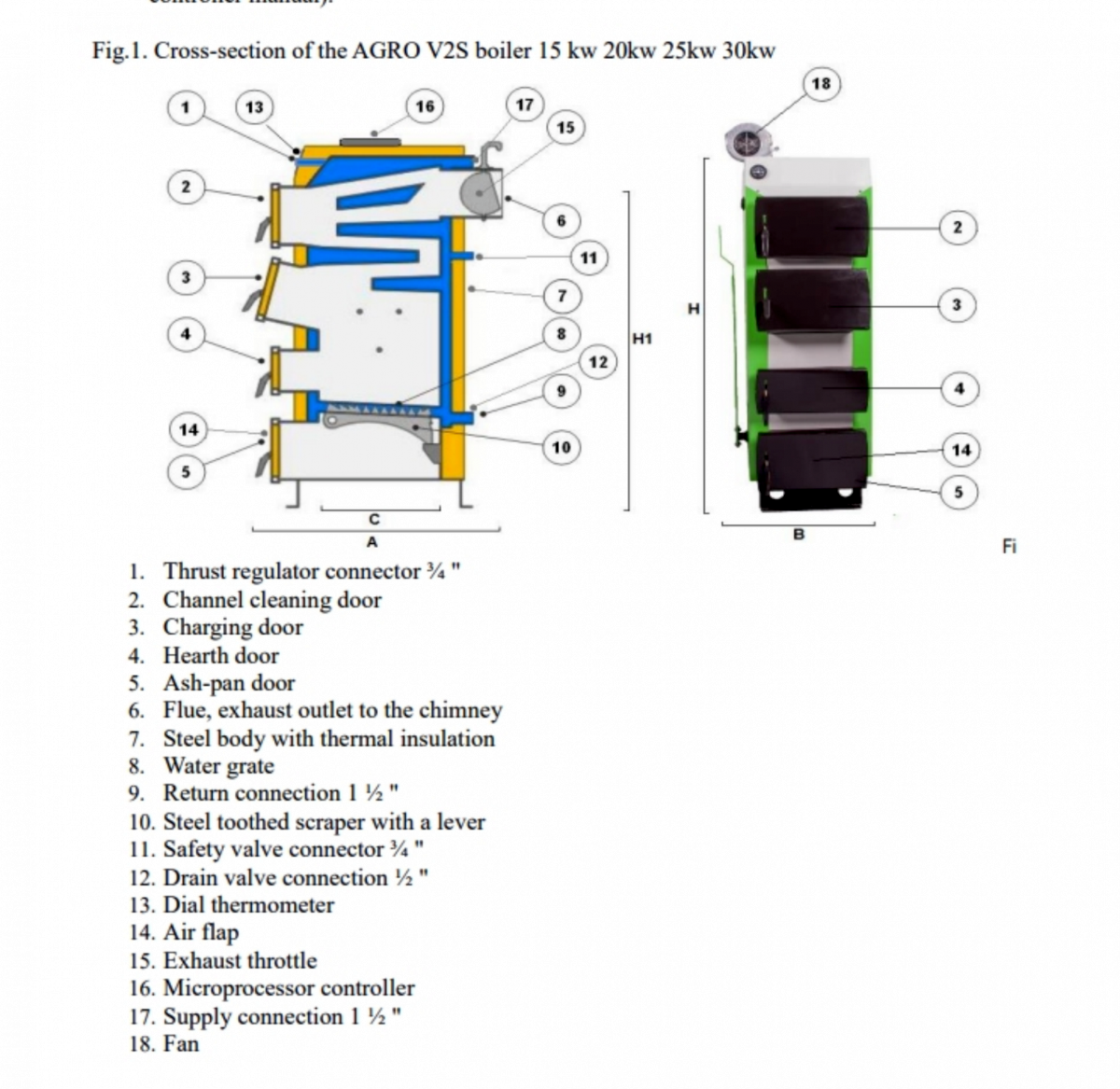 CAZAN COMBUSTIBIL SOLID MCE AGRO V2 15KW CU PANOU COMANDA+VENTILATOR