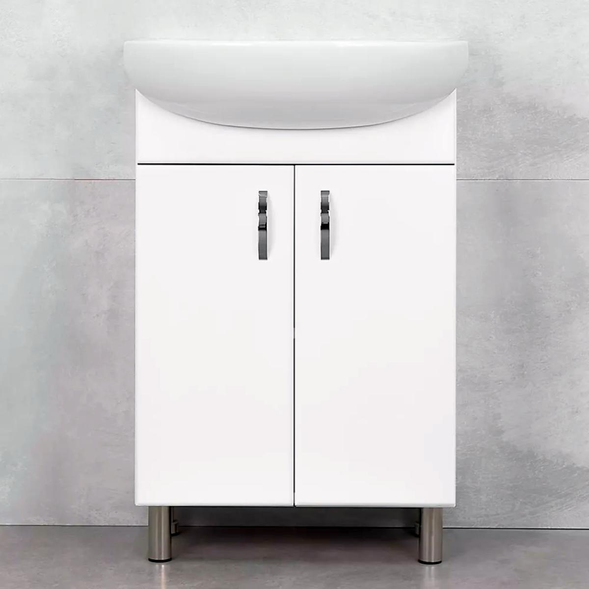DULAP PENTRU BAIE PE PARDOSEALĂ BAYRO BRIS SUB LAVOAR ARTECO 550 ALB, LAVOAR SUSPENDAT CERSANIT A...