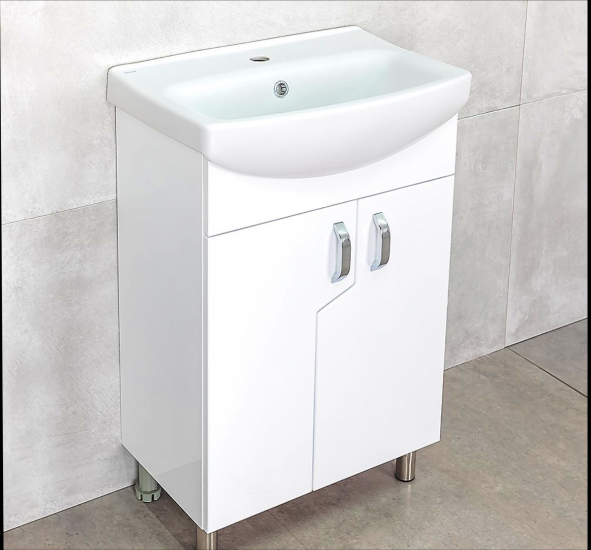 DULAP PENTRU BAIE PE PARDOSEALĂ BAYRO MIDAS SUB LAVOAR CERSANIA 550 ALB CROM, LAVOAR APLICAT CERSANIT CERSANIA 600X415X185