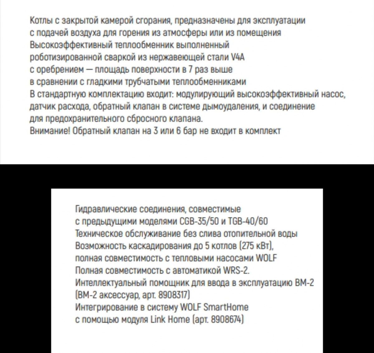 Tehnologie avansata, calitate „Made in Germany” a componentelor Strat de acoperire ceramica pe interiorul camerei de ardere, care asigura o curatare facila a acesteia Echipate cu pompa modulante de inalta eficienta si ventilator cu turatie variabila Capacul camerei de ardere este racit cu premixul gaz/aer. Schimbatorul de caldura poate fi pivotat in plan vertical pentru curatare fara a fi necesara golirea instalatiei. Placa electronica extrem de fiabila utilizata si la cazanele industriale. Nu contine vas de expansiune, iar apa calda menajera se poate prepara cu ajutorul unui boiler cu serpentina si a unei vane cu 3 cai divertoare sau cu un grup hidraulic separat in cazul utilizarii acesteia intr-un circuit cu butelie de egalizare. Suplimentar mai sunt necesare un senzor de temperatura pentru boiler si un modul de mixare MM.