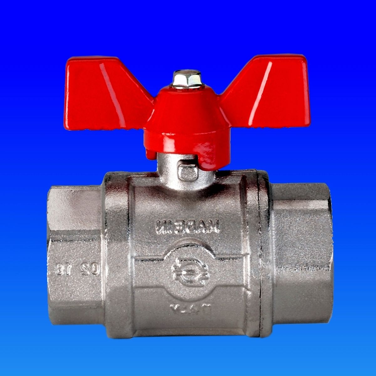 Presiune : 16 bar Diametru: 1 " Temperatura : 120 CRobinetii sunt confectionati din alama, prelucrati cu o suprafata nichelata stralucitoare, racorduri din ambele parti filetate, cu maneta tip fluture de culoare rosie. Se folosesc la instalatii de apa, instalatii termice, sisteme cu aer comprimat. Asigura o inchidere on/off.