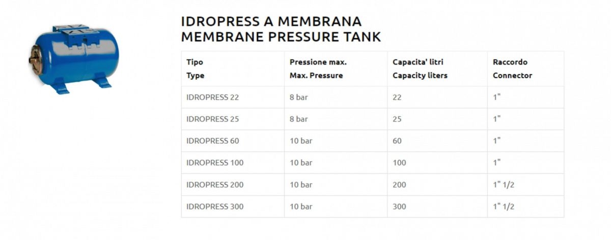 VAS EXP. ORIZ. IDROPRESS 25 L. 8 BAR, 1", PT. APA POTABILA,CU SUPORT
