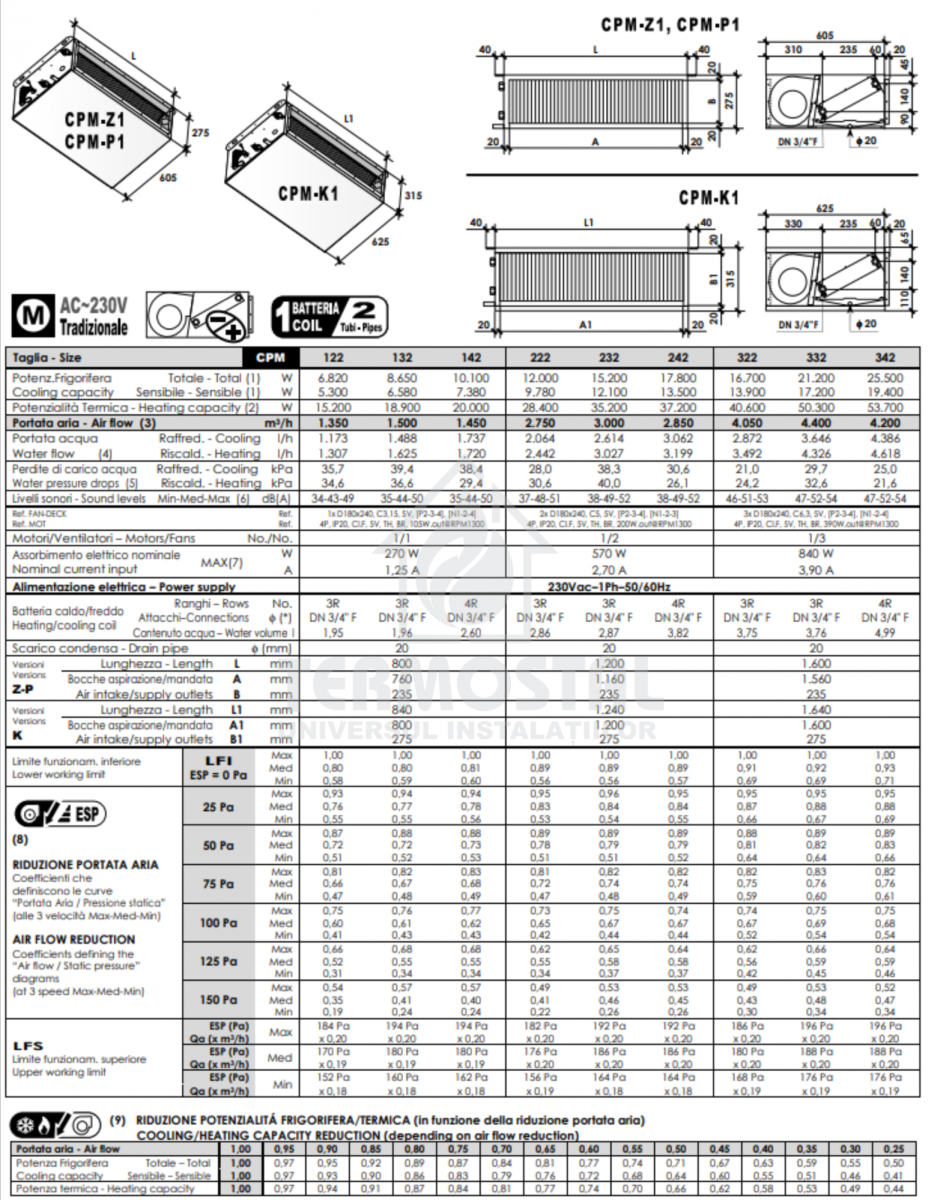 Ventiloconvector de tubulatura CPM 122 Z1, 6.8 FR- 15.2 CALD
