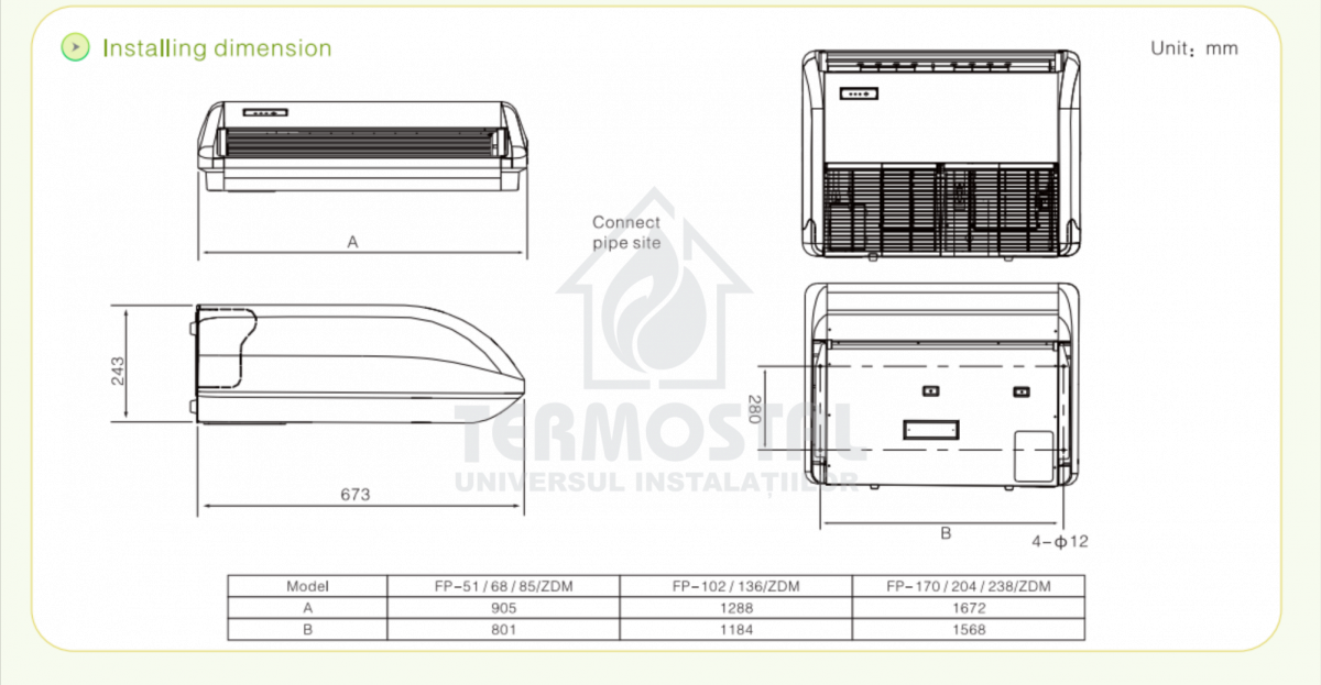 Ventiloconvector tavan-perete FP-102ZDM 5,4 FR-8,1 KW CALD
