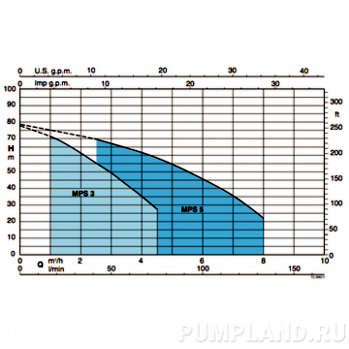 Pompă submersibilă multietajată de apă pură Calpeda MPS 304. Înălțimea maximă este de 41 m. Debitul maxim este de 4 m3 / h. Tensiunea este de 400 ~ 0. Putere - 55,<> kW.