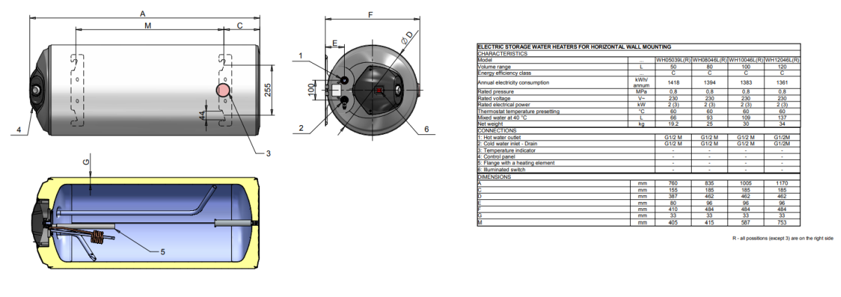 BOILER ELECTRIC ELDOM FAVOURITE 50 LT horiz.