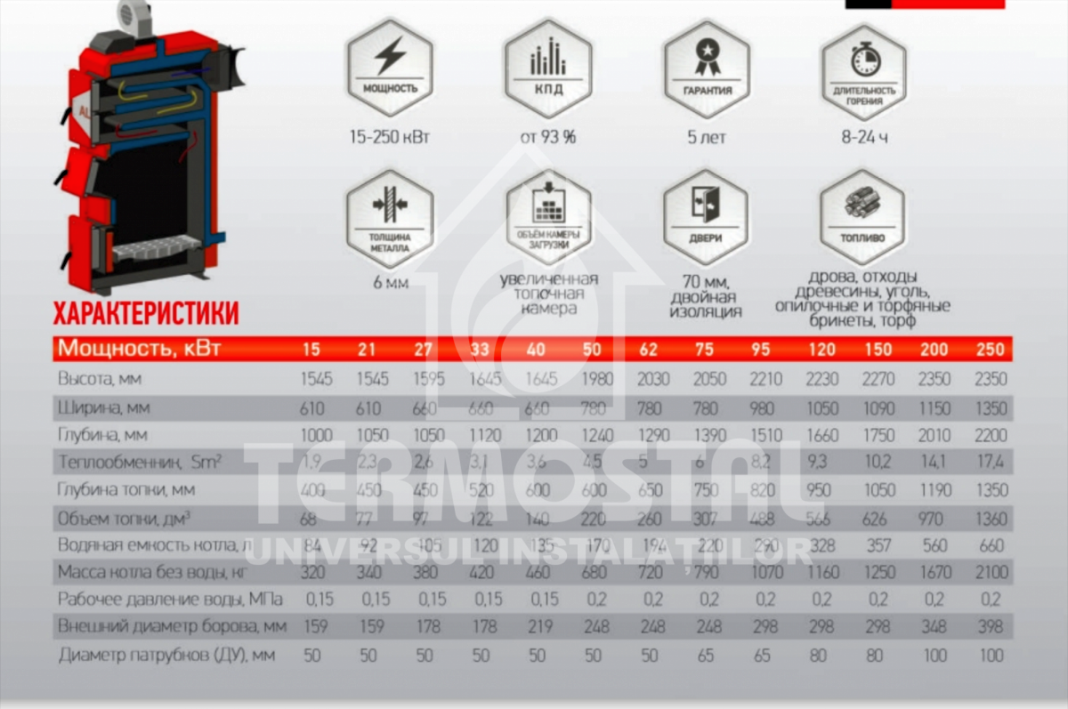 DUO Uni Plus 27 este un cazan de încredere, eficient, ușor de întreținut, cu ardere lungă, cu un schimbător de căldură dezvoltat. Este destinat încălzirii unei case private sau a unei alte clădiri cu sistem de încălzire a apei, cu o suprafață de până la 270 m 2 . Funcționează pe combustibili solizi – cărbune, lemn de foc, brichete de combustibil, turbă și diverse deșeuri din prelucrarea lemnului. Avantajele cazanelor Neus Duo Uni Plus: Timp lung de ardere pe o singură filă de combustibil; Performanță ridicată (eficiență 83%); Schimbător de căldură dezvoltat (rafturi de apă); Grătare rezistente din fontă; Abilitatea de a conecta automatizarea; Duze pentru alimentarea punctuală cu aer a cuptorului;