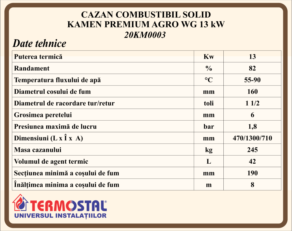 CAZAN COMBUSTIBIL SOLID KAMEN W/WG 13 KW