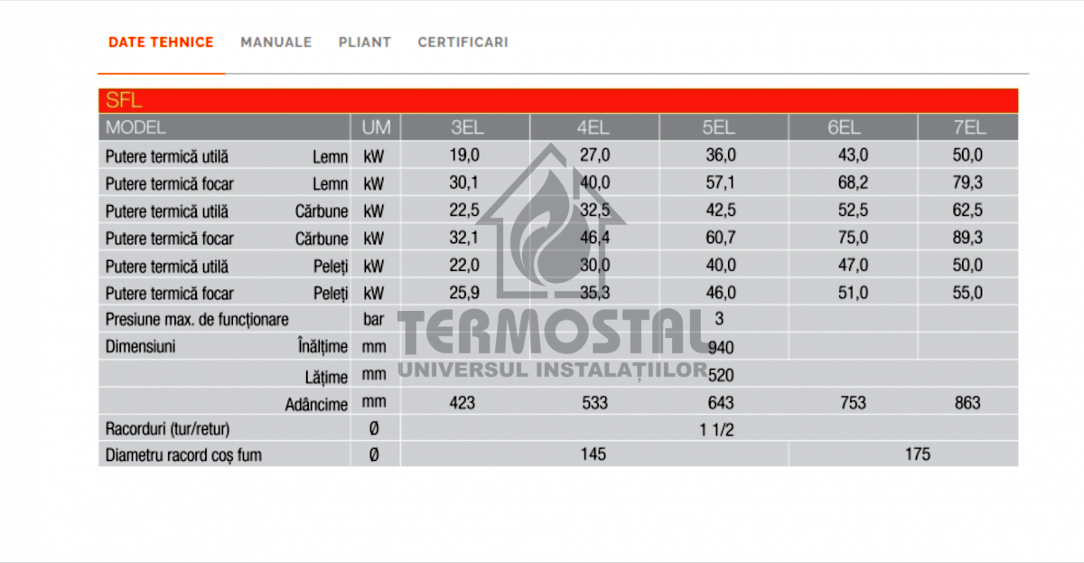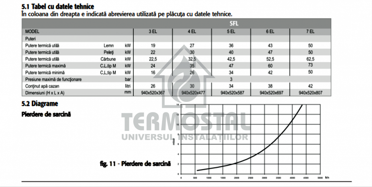 Model: SFL 3 Tara de origine: ItaliaSFL este o noua centrala din fonta pentru încalzire, care functioneaza cu peleti (cu kit optional). Corpul centralei este alcatuit din elemente asamblate cu nipluri, profilul elementelor a fost proiectat cu atentie, iar repartizarea optima a nervurilor permite obtinerea unei eficiente termice ridicate, a unul randament ridicat si realizarea unei economii de energie considerabile. Camera de ardere a fost proiectata în mod specific pentru a se putea alimenta cu bucati de lemn de dimensiuni mari; încarcarea se face prin usa de sus, care are dimensiuni mari. Camera de ardere este imersata în totalitate, ceea ce asigura o lunga durata de functionare si un randament ridicat.