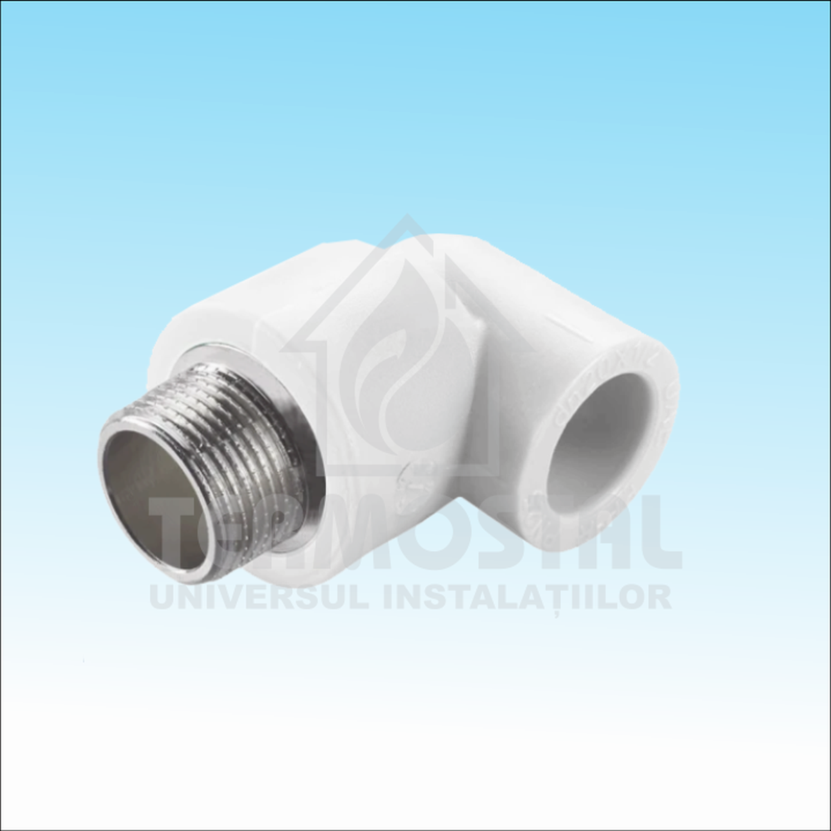Tara de origine: Turcia Diametru: 20 mm Greutatea: 0.068 Kg Culoarea: AlbCot la 90 C*, cu filet interior/exterior este folosit pentru îmbinarea țevilor prin care circula apa calda și/sau rece. Funcționeaza la o presiune mai mica de 25 de bar. și la o temperatura de 20C*. Este rezistent la coroziune și la diferite substanțe chimice.