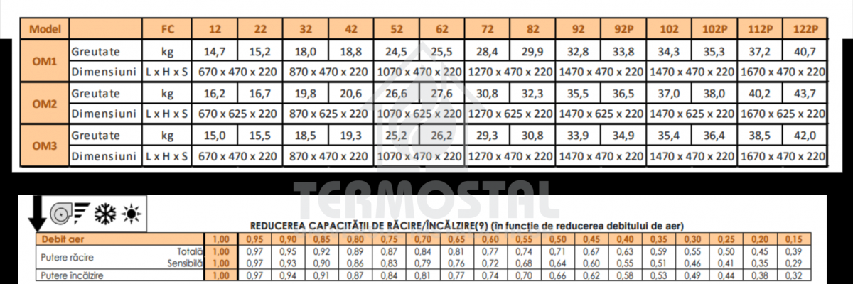 Ventiloconvector BPS OM1 FC 82, 6.42 FR-13.62 KW CALD