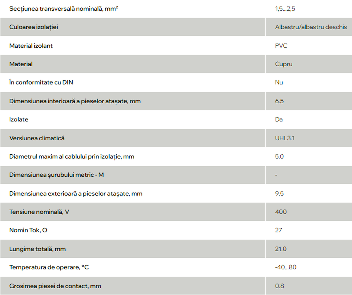 Vârful furcii este proiectat pentru sertizarea firelor cu conductoare de cupru și este utilizat pentru instalarea unităților electrice, unde este prevăzută o conexiune de contact adecvată bazată pe fixarea șurubului. Este posibilă demontarea completă a conexiunii de fixare numai prin slăbirea fixării șurubului. Materialul piesei de contact: cupru M1. Acoperirea părții de contact: cositorire electrolitică (asigură protecția produsului împotriva coroziunii). Introducerea ușoară a firului în interiorul manșonului de cupru