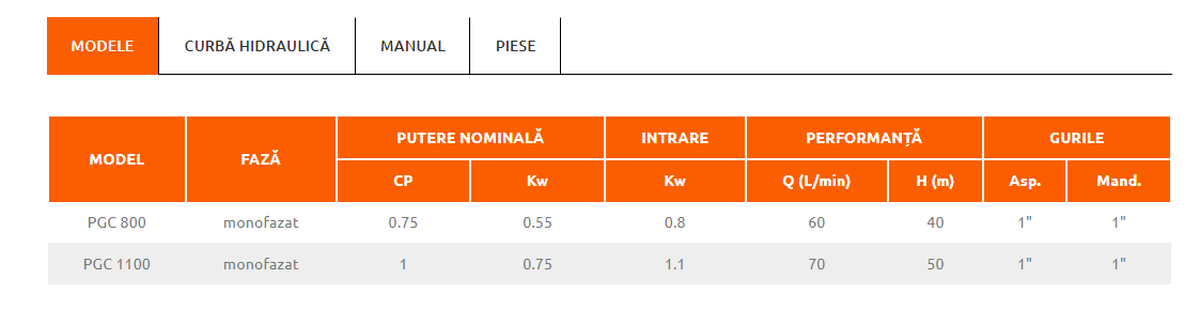 - Înălțimea de aspirație manometrică de până la 8 m.