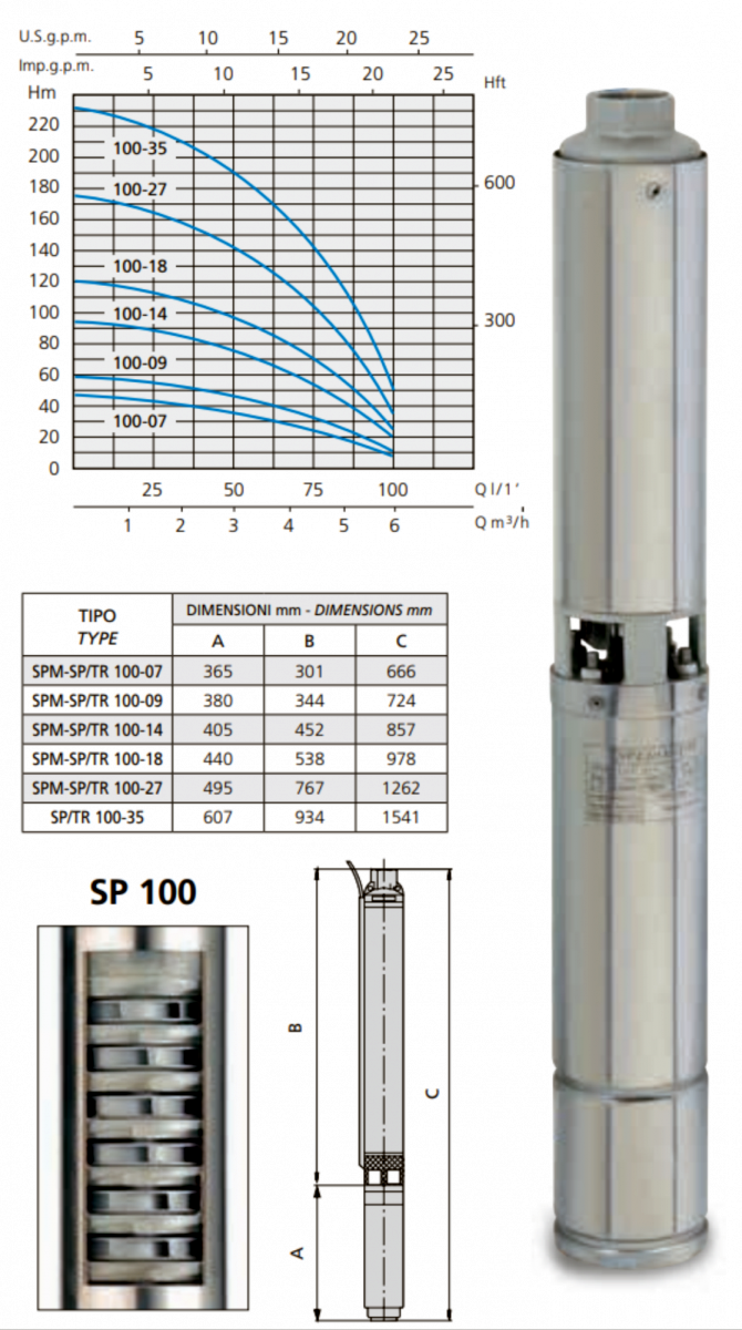 POMPA SUBMERSIBILA SPM 100-09, 230 V~50Hz, 0,75 kW