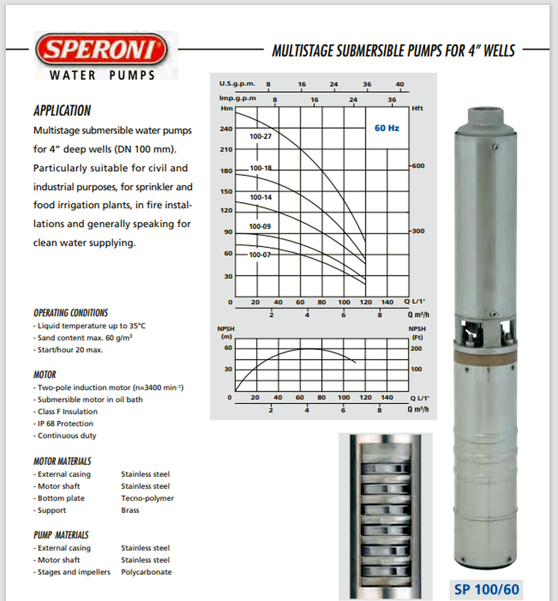 POMPA SUBMERSIBILA SPM 100-14, 230 V~50Hz, 1,10 kW
