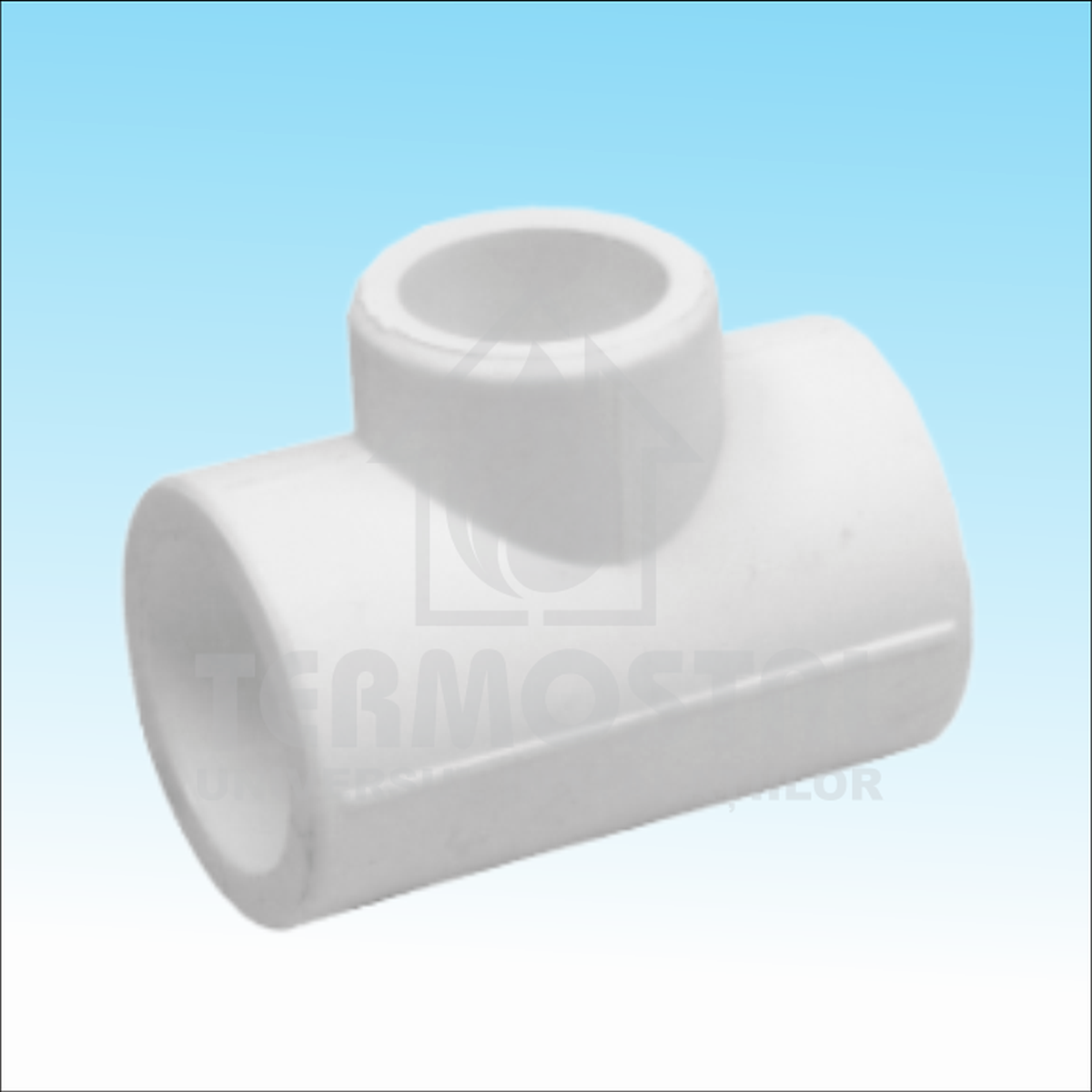 Tara de origine: ChinaTeu cu diametre egale, se foloseşte în instalaţii interioare prin care circulă apa caldă sau rece, pentru îmbinarea ţevilor.