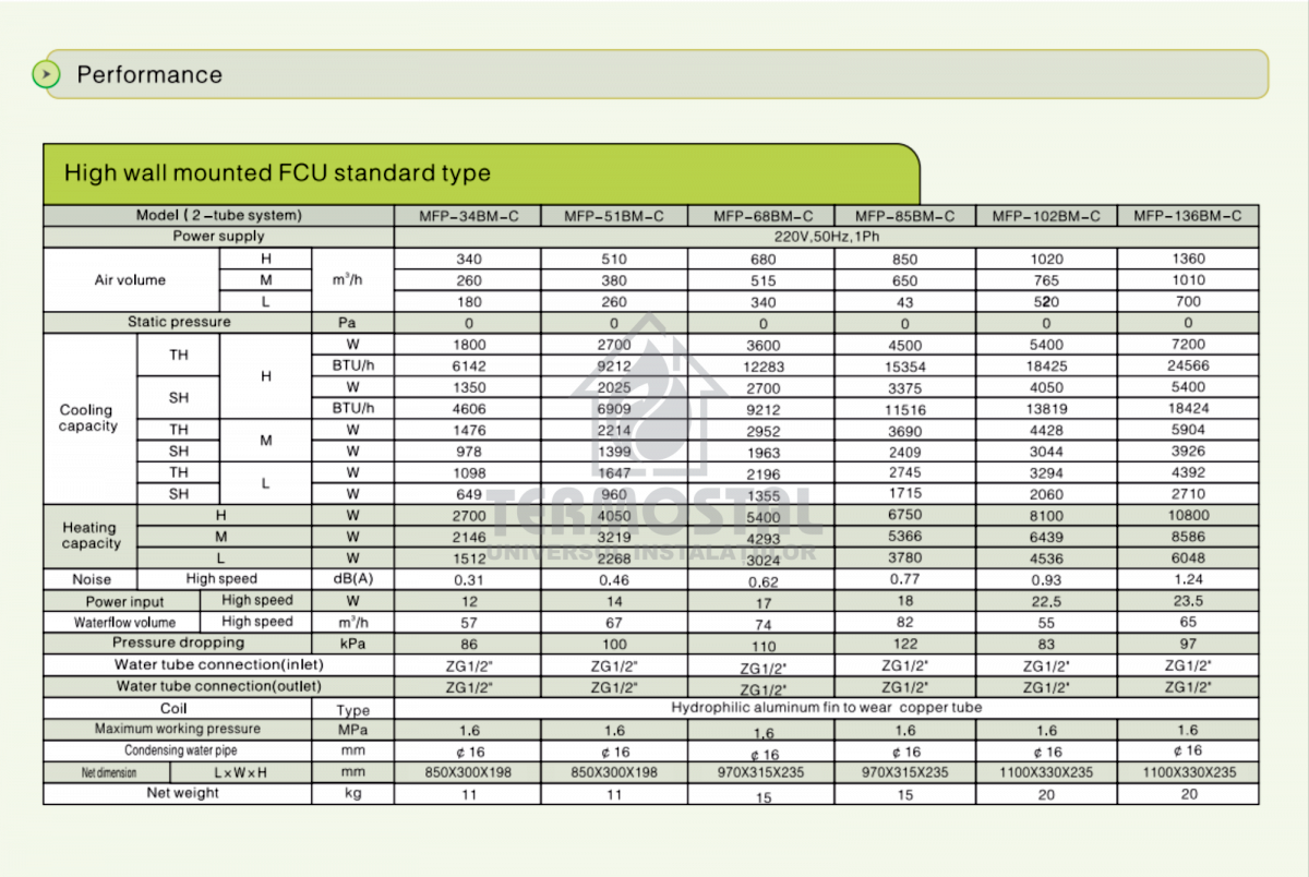Ventiloconvector de perete FP-136BM 7,2 FR-10,8 KW CALD
