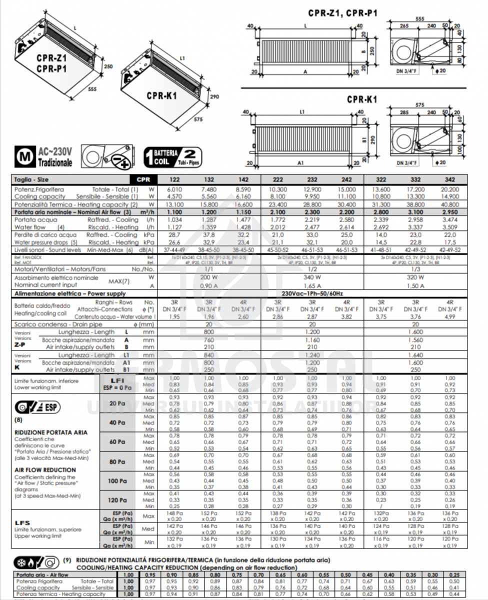 Model: CPR Tara de origine: Italia Alimentare electrica: 230V/50Hz